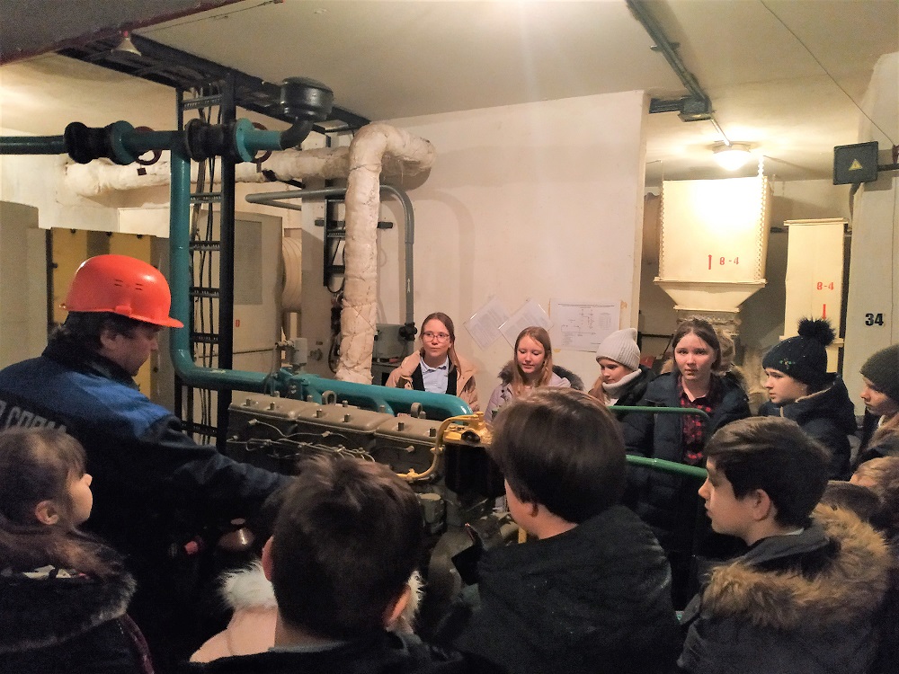 Ранним утром, 25 пятиклассников в сопровождении классного руководителя, встречали работники ГУП СППМ – инженер по наладке и испытаниям Владимир Саблин, Игорь Савин и дизелист Андрей Лебедев, которые перед началом экскурсии провели краткий инструктаж по правилам нахождения в защитном сооружении (ЗС ГО), после чего ребята смогли проследовать в каждое помещение убежища.