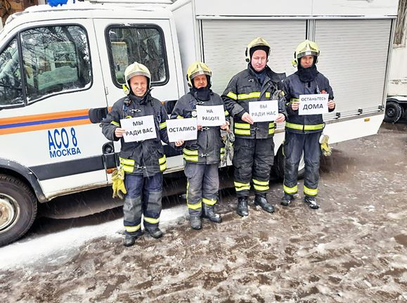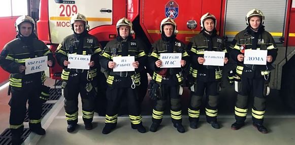 Московские пожарные и спасатели поддержали флешмоб «Оставайтесь дома»