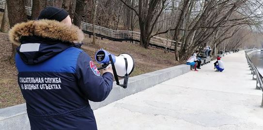 Сотрудники 24 станций Московской городской поисково-спасательной службы на водных объектах с использованием громкоговорителей предупреждают людей об ограничении нахождения в многолюдных местах в связи с опасностью распространения коронавируса.