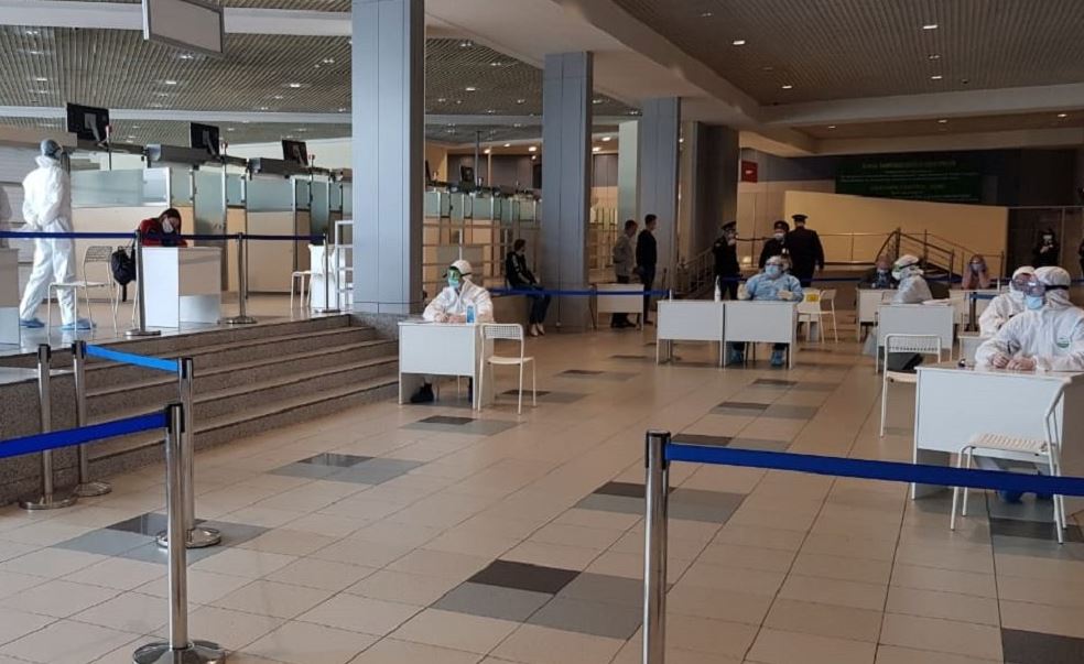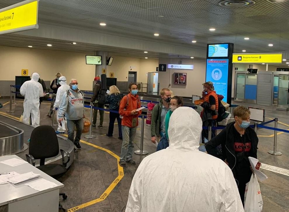Спасатели проводят термометрию и санобработку, организуют соблюдение дистанции при перемещении по терминалу аэропорта, а также при необходимости помогают прибывшим из-за границы гражданам заполнять анкеты.