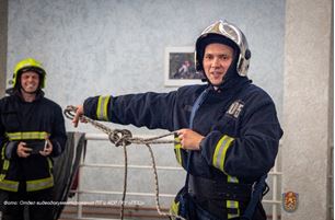 Дальше пожарные сдавали нормативы профессиональной подготовки, которые включали в себя три этапа: преодоление полосы препятствий, штурм здания и вязка спасательных петель. На 100-метровой полосе препятствий пожарный в полном снаряжении должен преодолеть двухметровый забор, пробежать по горизонтальному брусу с двумя пожарными рукавами, подключить их к разветвителю и, протянув рукава к условному месту пожара, соединить брандспойтом. Все участники максимально старались и накалу страстей не было предела, эмоционально поддерживая друг друга, каждый стремился показать лучший результат.